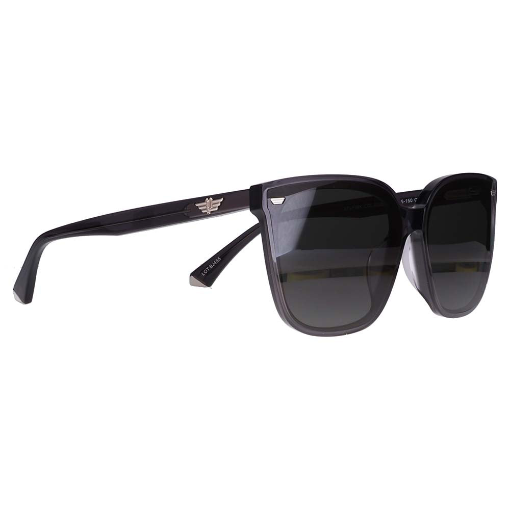 POLICE 2025年モデルの新作サングラス「SPLP99K」は、オーバーサイズのアセテートサングラスであり、レンズはフロントを覆うように設置され、サイドの変型ウイングロゴをレンズの上からはめ込んだユニークなデザインとなっています。