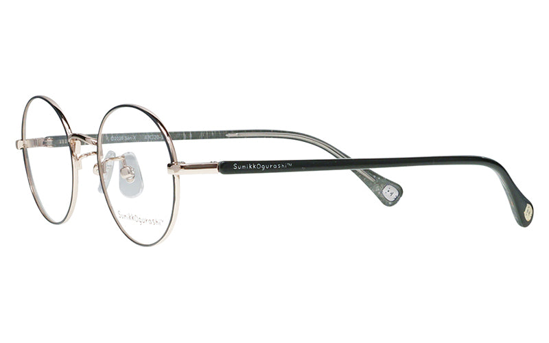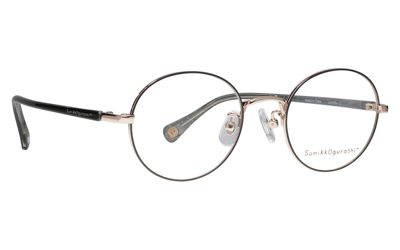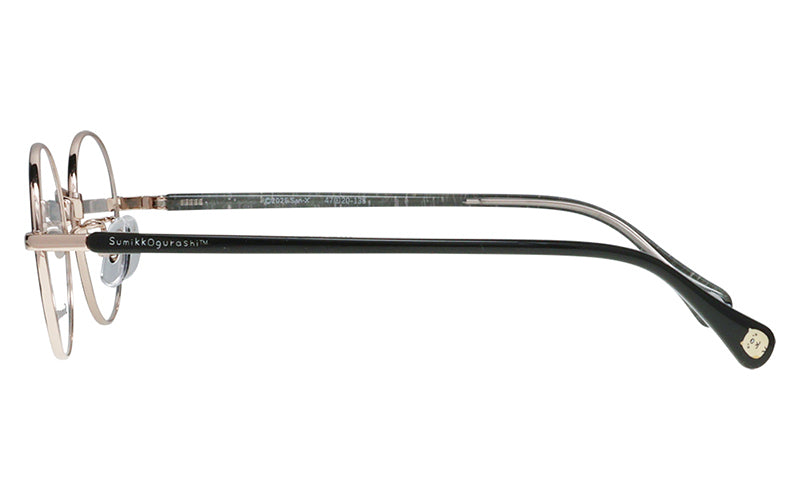 No.12はジュニアや女性にもおすすめの、小ぶりなボストンフレーム。テンプル内側はポップな線画模様、テンプル外側にはさりげなくロゴが入ったデザインです。テンプルエンドに入ったすみっコたちがアクセント!