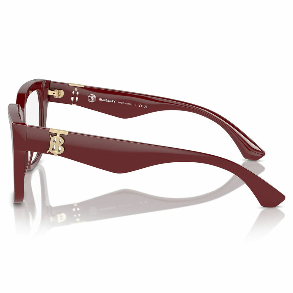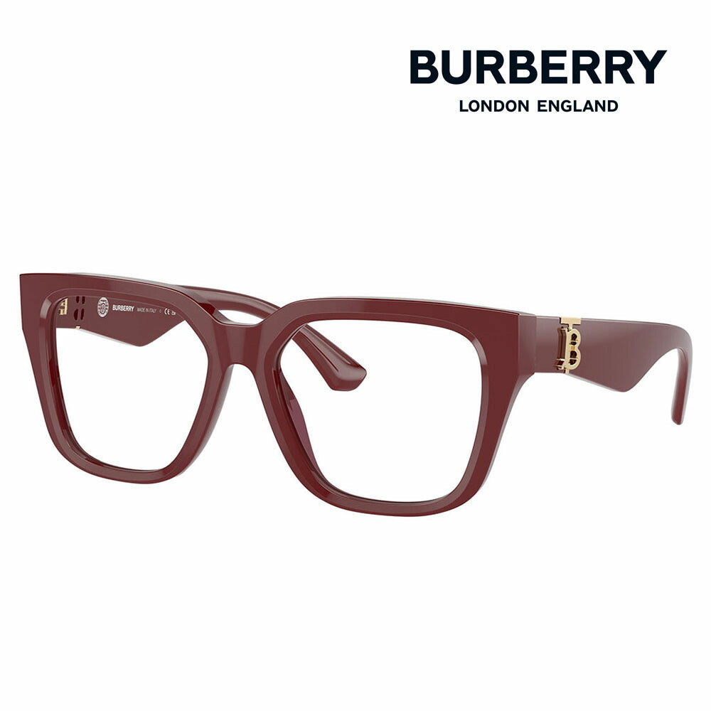 バーバリーのメガネフレーム「BE2403F」は、左右のテンプルにあしらわれた大胆な「TB」ロゴが印象的な、スクエアシェイプのセルフレームです。